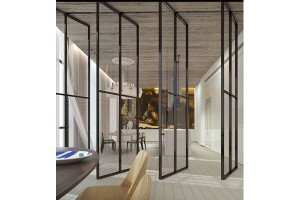 Screen made from pivoting doors, Nave Tower penthouse by Gal Marom Architects Screen made from pivoting doors, Nave Tower penthouse by Gal Marom Architects
